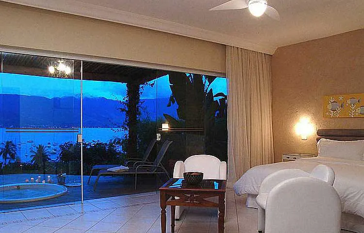 Vista panorâmica do Saco da Capela uma suite com todo charme, privacidade e conforto cercado de floresta tropical.